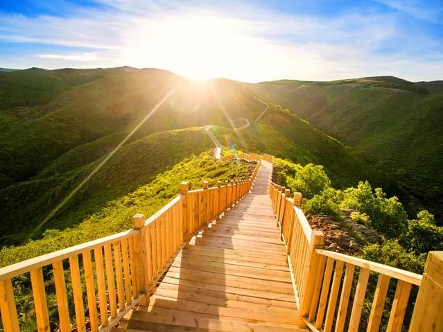 走上如蛟龙一般盘踞在山脊上的木栈道,