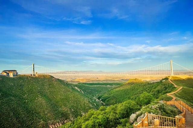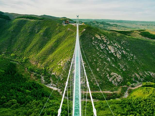 便可见一座玻璃吊桥飞架于山谷间,