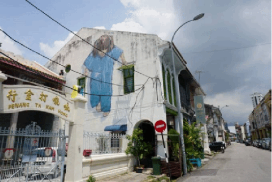 除了这些大大小小的壁画以外,充满旧的风情的南洋建筑也是一大看点。