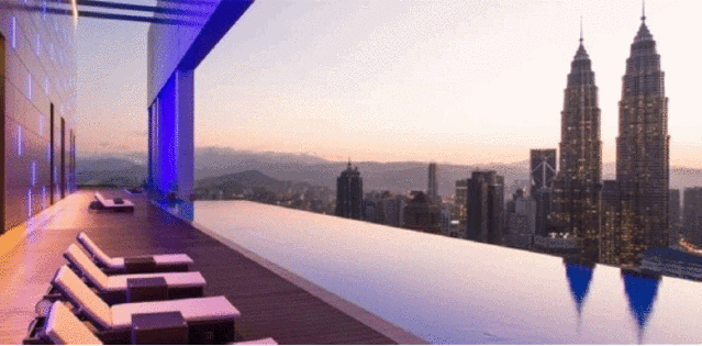 51楼有无边游泳池,对面就是吉隆坡地标建筑双子塔,在51楼游泳感觉不错哦,好多漂亮的小姐姐小哥哥,早上九点多上去玩顺便看看白天的城市风光。