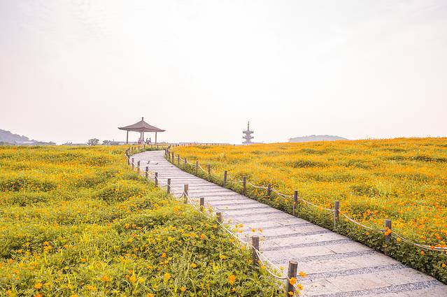 在拈花湾,白天,你可以看到遍野的花海;