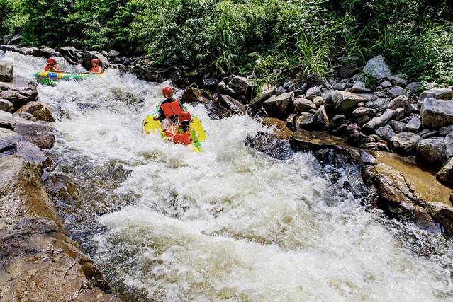 龙浒峡漂流的上半程“勇士漂流”最适合喜欢挑战爱刺激的成年人。在那里,拥有的不仅是蜿蜒曲折的河道、时而湍急时而舒缓的水流、超大落差的地势,还有险峻翠绿的两岸山峦,令人心旷神怡、可以尽情呐喊,释放都市生活带来的压力的山谷。人们可以体验到不一样的“惊险刺激”“心惊肉跳”。