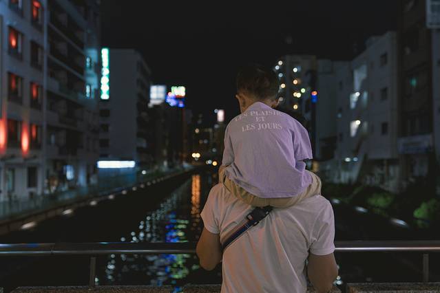 来到了越夜越美丽的大阪,泰山患上了一种怪癖,一定要出门睡,躺在婴儿车里,在凌晨的街头影影绰绰,走入梦乡。