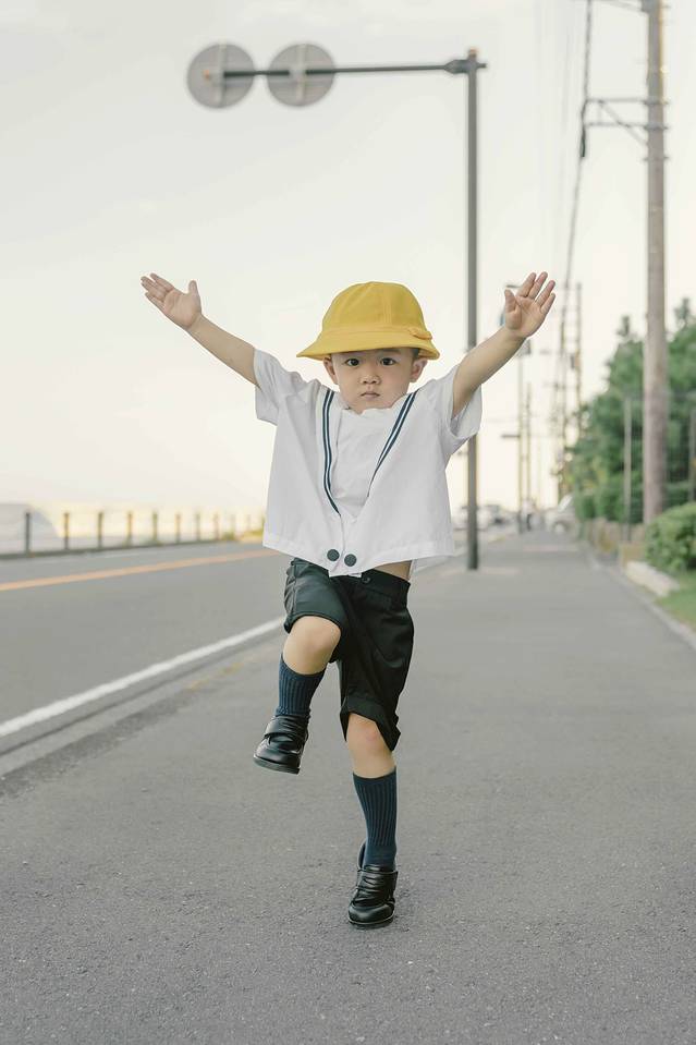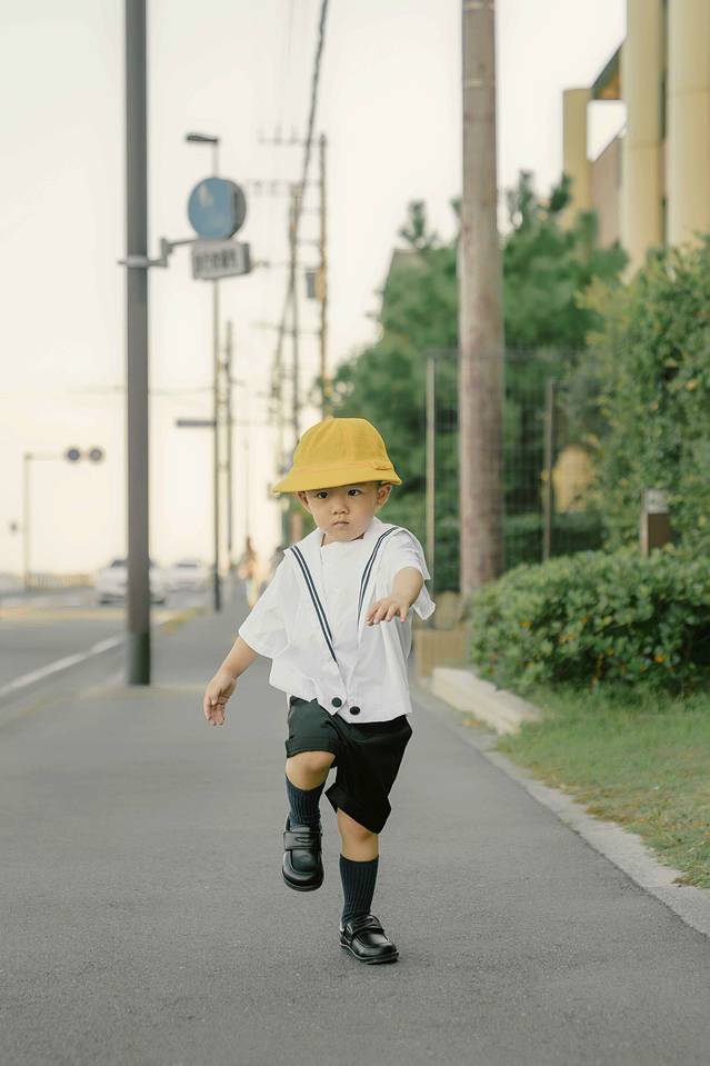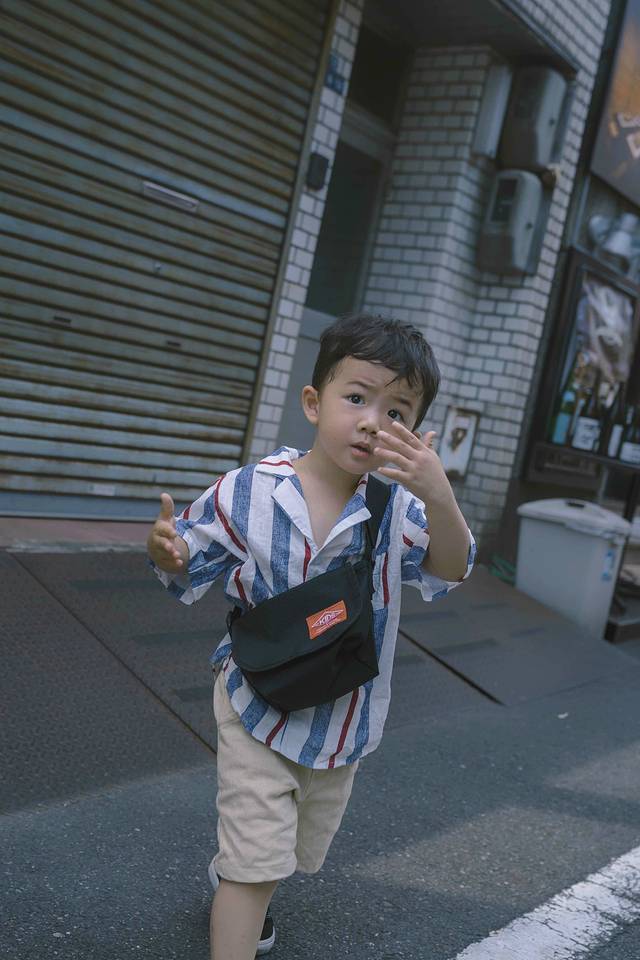 ▼换上了一套日本小朋友的行头,路上有人会不时看过来,我们也礼貌的打招呼:“konn ni qi wa.”