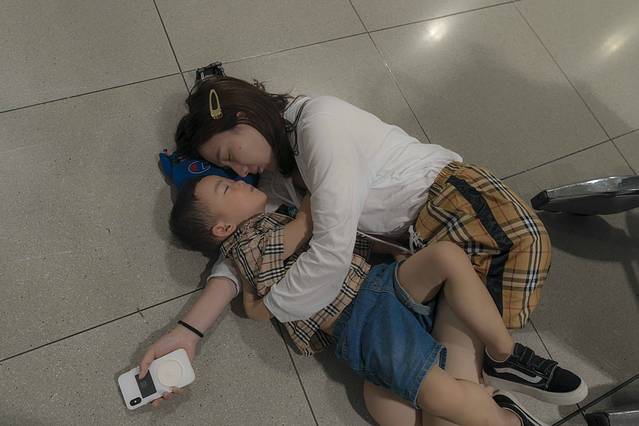 路上风雨侵袭,伞都成了无物。到了地铁站,站口已禁止入内,最后一班地铁刚刚驶离,杵在入口处的我们仿佛置身某部灾难电影里,我们深吸一口气,准备好卯足劲逃离。我冒雨拦住一辆“勇敢”的计程车载我们去机场,雨和风仿佛了解了我们的焦躁,变得更加肆无忌惮。横风让车在跨海大桥上明显摇晃,媳妇抱着孩子,我拽紧了她的手。