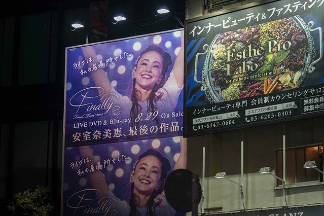 ▼街头,巨大的广告牌,写着安室奈美惠隐退前最后的作品,安室奈美惠时代结束!这位影响力遍及亚洲的日本歌姬,从此将要以普通人的身份,展开新的生活。整个亚洲都在惋惜,粉丝们流泪不舍,却也微笑祝福。