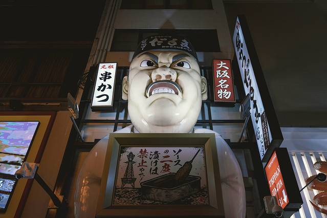 道顿堀美食街是大阪最繁华的地段,可以称得上地标级的美食聚集地。如果说日本“吃在大阪”的话,那么大阪就吃在道顿堀。对于吃货来说这里绝对是天堂,拉面、章鱼烧、铁板烧、烤肉炸串、旋转寿司、河豚料理及各种甜点应有尽有。街道两边一字排开的餐馆尽管店面不大,但布局和装修都独具特色,口味上乘,自然门庭若市。