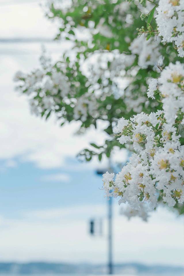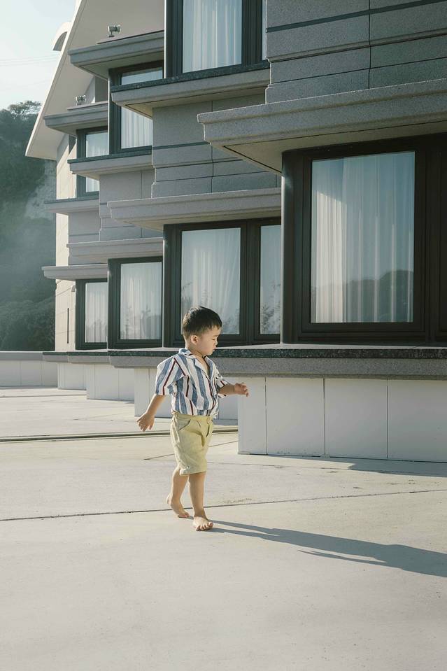 左手边是白色透亮的樱花,右手边是翻腾起伏的蔚蓝色大海。从酒店出发步行数十米便是海边,坐在堤坝上吹海风,看海鸥四处盘旋,带着精力旺盛的孩子,父母的身躯依旧疲惫,可心灵却被治愈。