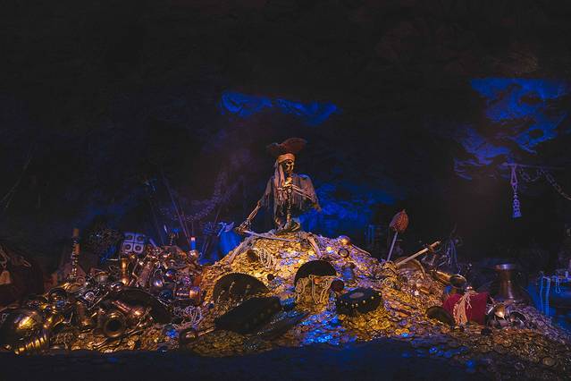 我们当天坐的第一个项目是“ 加勒比海盗”,里面昏暗的场景、骇人的音乐并没有让 泰山感到害怕,他十分专注的观察着里面的人物。每一个人物都做的以假乱真,一颦一笑都栩栩如生,海盗杰克开枪的火光闪过, 泰山居然拍手称好。