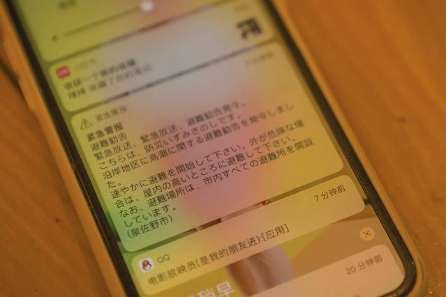 ▼“叮咚”机场几乎在同一时间响起了苹果手机的声音,2018年9月4日 13:00,在台风登陆前半个小时,手机自动收到了警报两次。自然灾害频发的 日本 有着很好的灾难应急系统。