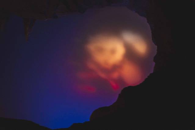 推开大门,我们就好像被水晶包裹了一样,一个楔形的端点就是教堂的水晶十字架。耳边一直环绕着圣洁的歌曲,不由自主的合十祷告。黄昏前往,虽没有白天透亮,但正值夕阳西下,大面积的蓝和太阳的橙色光晕交织在一起,和教堂内部的灯光一同呼吸。