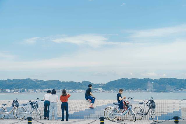 车站旁奔跑的棒球少年,阳光下的冲浪少年,夏日海边的花火大会,牵手的甜蜜恋人,略显迟钝的老式电车,黄昏时的橙红天色,入夜后的深蓝大海......镰仓无疑是青春代言人,年轻的时候在这里恋爱,上了年纪也可以像《倒数第二次恋爱》里的中年二人组一起坐车站前的石阶上谈谈天。年轻属于年轻人,镰仓属于任何人。