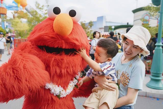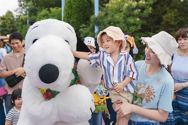 ▼然而,进入园内,画风依旧,没有米奇,没有唐老鸭,没有高飞......但是还有史努比,芝麻街,小黄人。我们又举着孩子,在追星的路上一去不复返。