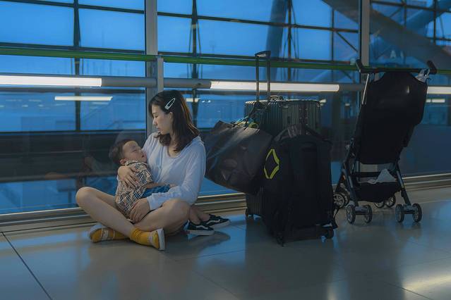 ▼18:00,收到了航班正式取消的通知。我开始到处去接收消息,终于了解到我们的处境:台风带着一艘大货船把跨海大桥撞错位了,我们所处的关西机场变为了孤岛,进不来也出不去。望了望外面的天空,突然觉得灰暗的可怕,我该如何带着孩子面对航班取消,也没有任何交通工具可以带我们离开机场的窘状,深陷焦虑无法自拔的我们,被儿子稚嫩的声音拉回现实:“爸爸妈妈,这个怎么玩?”