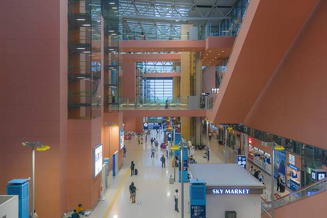 日本 国内线一般都在羽田机场, 日本 致力于让坐飞机变得跟坐火车一样简单,在羽田坐国内线起飞30分钟前还可以值机,各种手续都比我们乘飞机简单许多,如果能买到合适又便宜的机票,飞机也是很好的选择。
