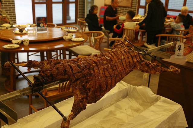 马镇的烤羊吃六道,分别是:脆皮,皮下肉、肋排,羊腿(烤串),羊羯子,喝汤,大概如此。一遍一遍的烤制,每一遍的佐料也有所区别,能吃完所有工序说明你有口服,因为真的很好吃。