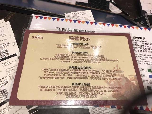 我买的是酒店+大马戏+动物园+自助晚餐的双人套餐2400左右,所以要补北北的儿童票,大马戏我是网上买的,怕买晚了没有当天的票了,动物园的票是在票务中心现买的。