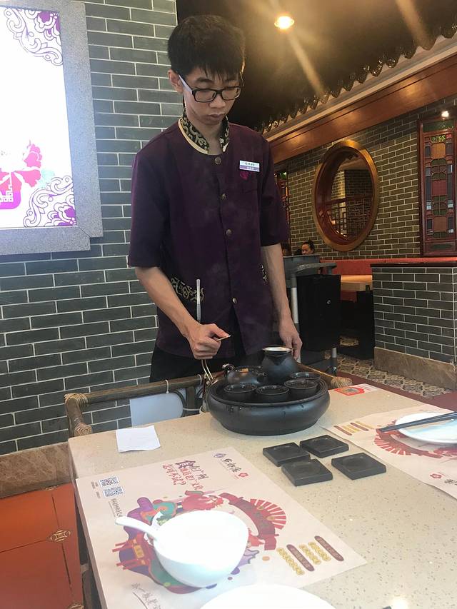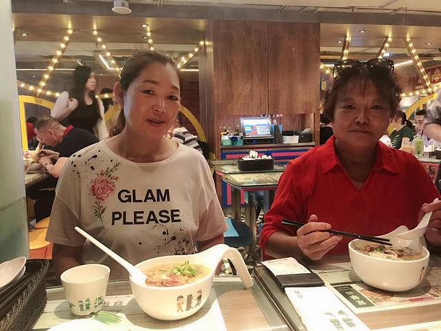 美食街,有好多家店铺,我们早上点了皮蛋瘦肉粥32,还有油条16,一碗牛肉面45,价格还可以,分量够足,在景区消费,就要有这个心里准备!吃饱喝足,刚好票务中心9点开门,去换票。