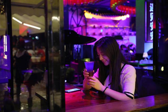 这家咖啡吧的地理位置在西街,西街傍晚的时候就开始热闹,小酒吧很多,啤酒鱼也很多,大概8:00多的时候,各小酒吧的驻唱歌手也会各就各位了,无论你是喜欢听民谣还是流行乐西街都能满足你,如果喜欢热闹的话