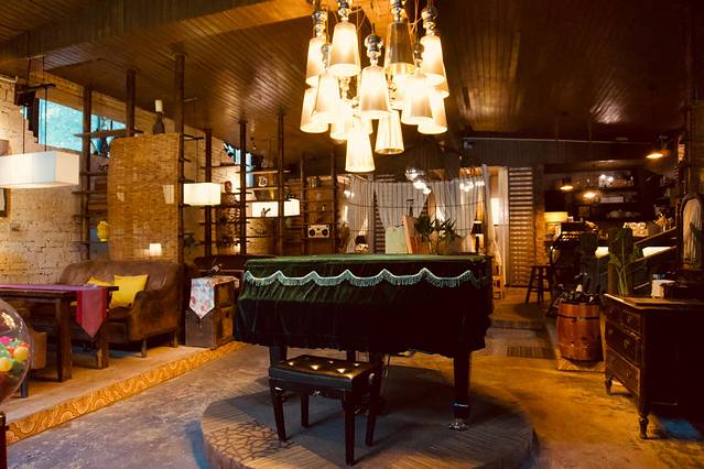 接着我们去了西街的雅提咖啡馆,油腻的吃多了就会想要些西餐来哄哄胃,这个店非常有格调,是我喜欢的小资情调,石板路下去,两边的绿植长得十分张狂,店的小门是木板门,走进去摆放着一架钢琴,优雅极了