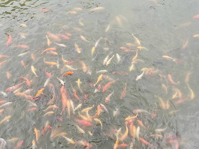 寺庙的鱼,又大又多,还有好多巴西龟