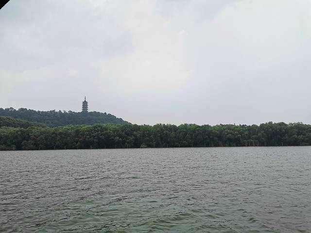 坐在船上拍的~清风徐来,水波不兴~那个塔就是万佛塔咯~
