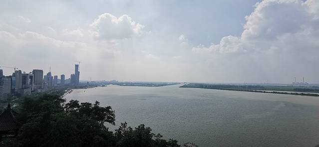 在北固楼上,风很大,吹着很舒服,看的应该是长江?汇合处有明显的分界线,有点像重庆朝天门码头看到的水面