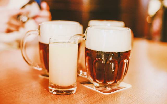 没有事先预定的我们,却是等了好久才进了里侧的一只啤酒帐篷,稍等片刻,焦糖色的发酵黑啤便会装在1L的巨大玻璃杯里缓缓端来,丰富饱满的泡沫浮在面上,麦芽的香气直扑鼻尖,大口喝下,在这万人狂欢的节日里让你着了魔般地一杯一杯停不下来~