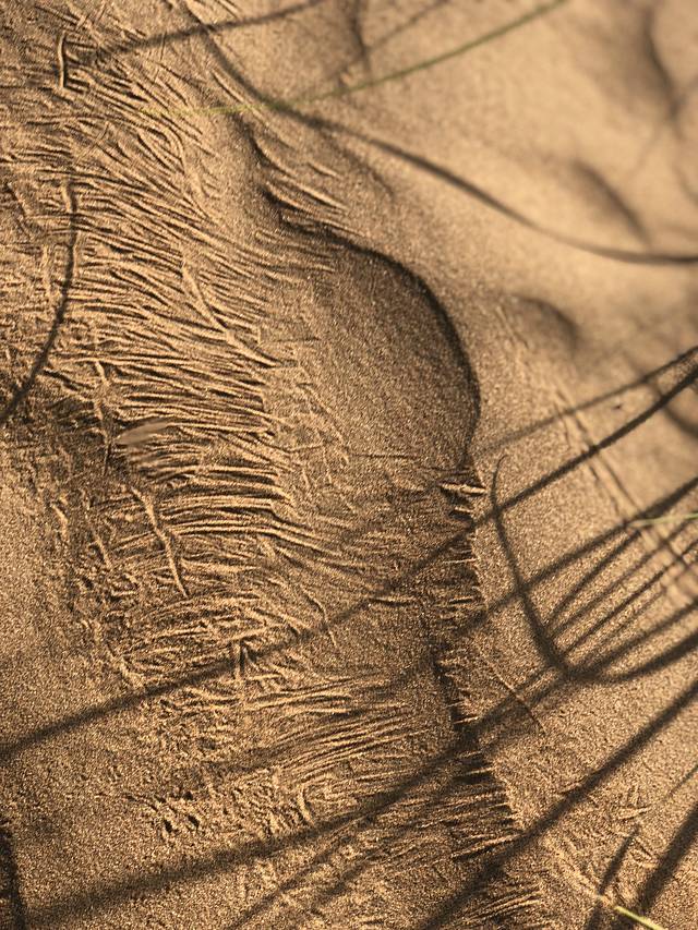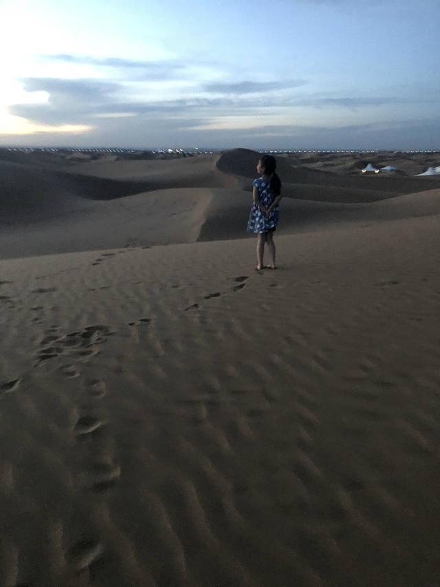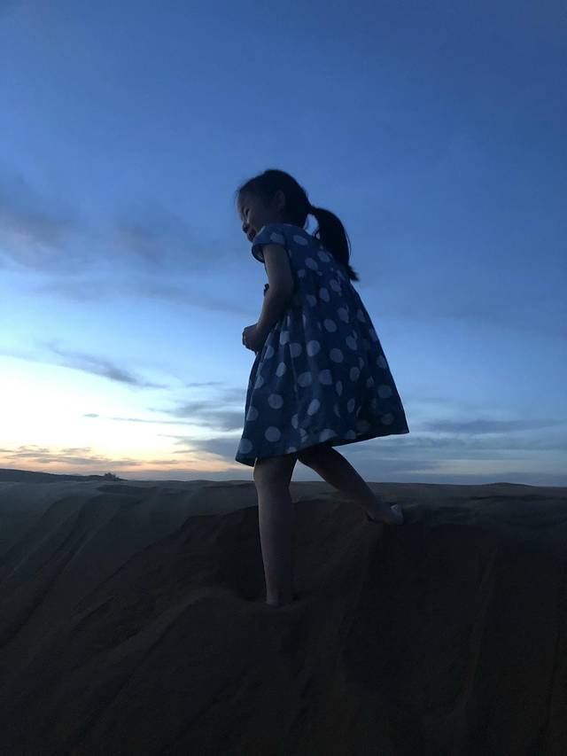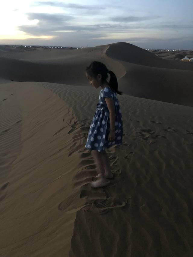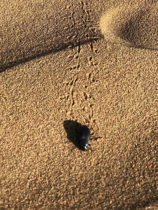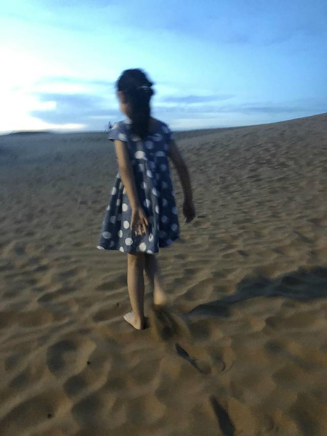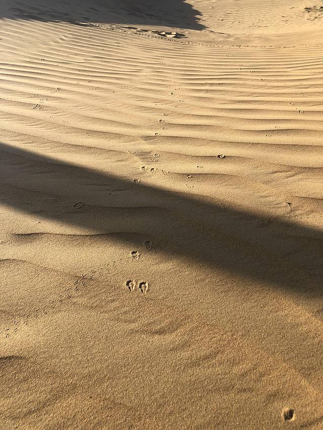 我和爸爸偷偷在沙丘上探险,没有告诉妈妈哈哈,发现了好多甲壳虫,还有虫虫和小鸟的小脚印。还有风吹小草留在沙丘上的痕迹。