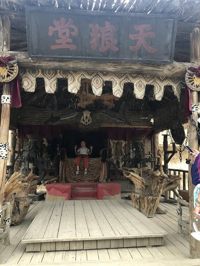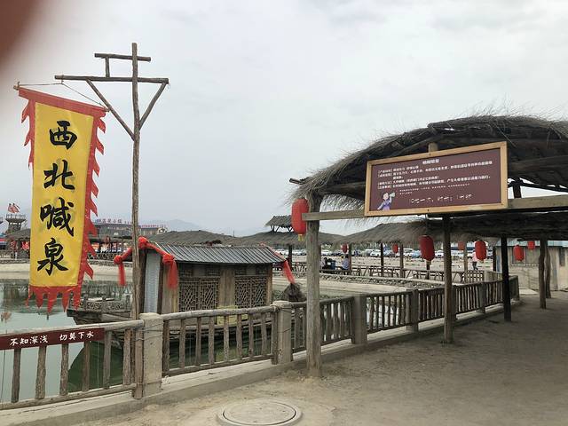 昨天好累,今天睡了个懒觉,睡醒爸爸买回了拉面,吃完面,爸爸说带我去看大话西游拍电影的地方看看。早上出发爸爸开车大约1个小时之后,我们到了镇北堡西部影城。影城外面有个大声喊就喷很高的喷泉,好好玩。
