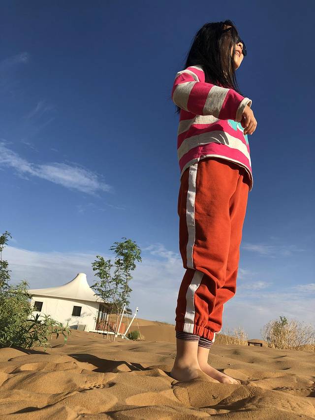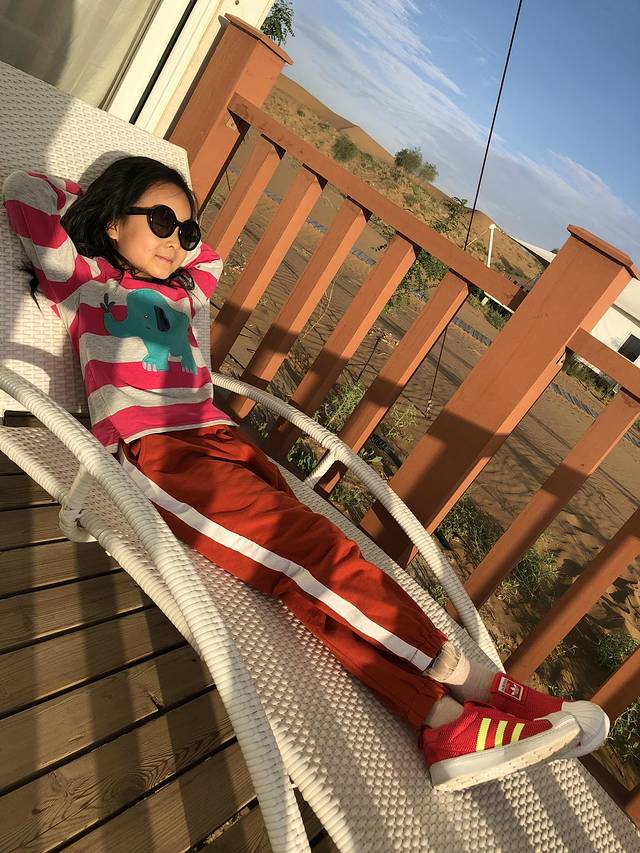 沙坡头的沙漠区和早上我们玩的金沙海一模一样的,都是骑骆驼,好好玩。玩饿了爸爸带我吃饭饭。