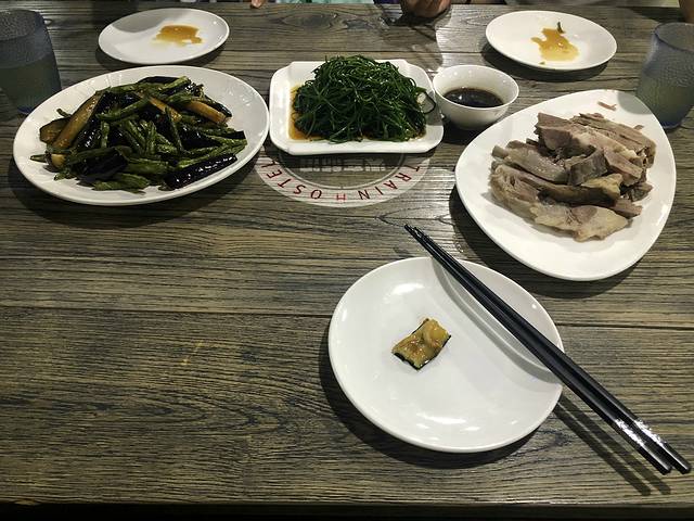 晚饭在酒店餐厅吃了手抓羊肉、沙葱、土豆炖茄子,爸爸还喝了啤酒,我和妈妈喝了酸奶。