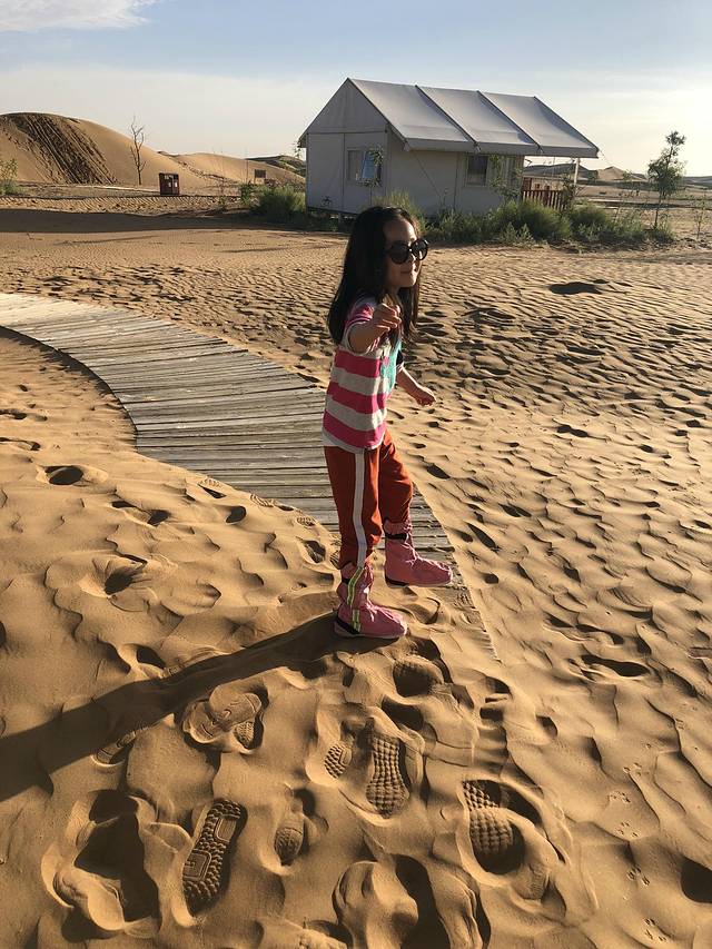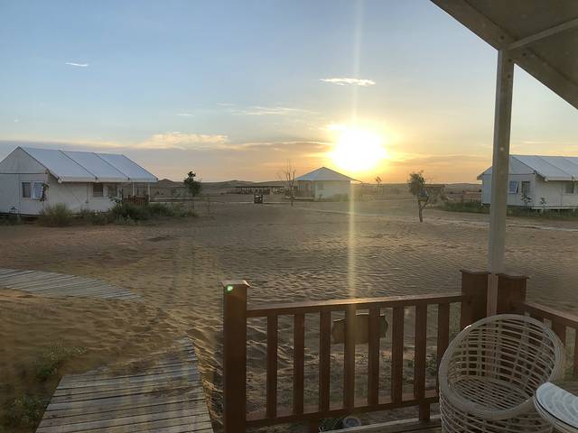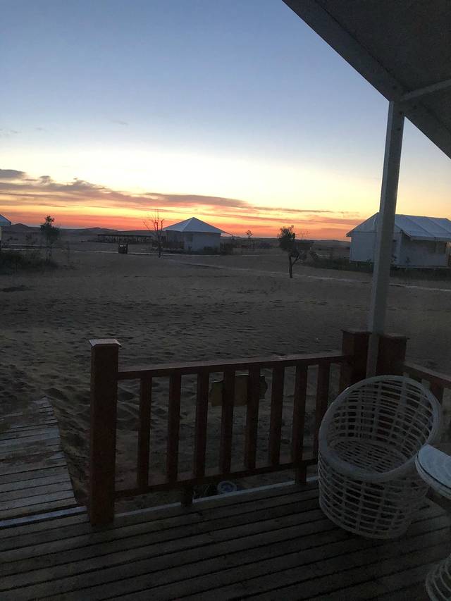 早上5点太阳就升起来了,爸爸早早的叫我起来看沙漠的日出了,太阳从另一个帐篷的屋顶慢慢露出笑脸,金灿灿的光芒照进了我们的帐篷里,好亮啊。