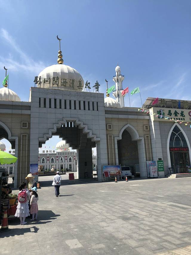 今天我和爸爸去了清真寺,好漂亮的清真寺,房顶都是圆圆的,雪白雪白的墙。里面的人都在念经。