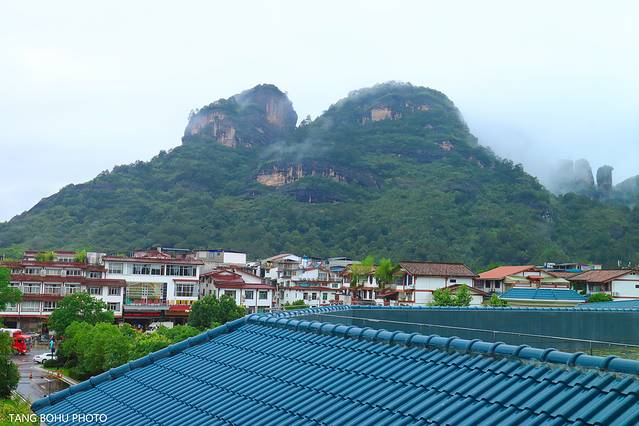 让我惊喜的是,当我打开房间的那一刻,眼前大王峰尽收眼底,可以说是躺在床上就能看到大王峰景区,雨后的大王峰烟雾缭绕,它魏然屹立、气势雄浑,十分与众不同,远远望去,宛如擎天巨柱。在武夷三十六峰中,向有“仙壑王”之称。离得如此之近,仿佛就像是画之中,武夷山的山与水构成了一幅画,在大王峰脚下红色屋顶那是当地的居民房。