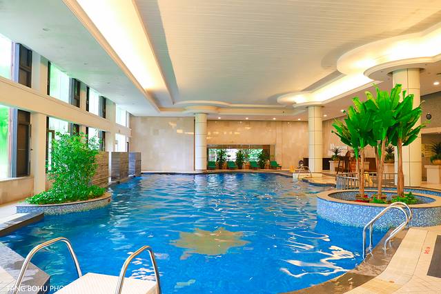 有一个通往一期的走廊,不管外面是下雨还是刮风都不用怕,走廊两边绿色植物郁郁葱葱。到了一期有一个室内的游泳池,那怕是外面下雨也可以在这里游泳,室内游泳池并不是非常的大,但够用了,一边有透明的玻璃落地窗,游泳时可以看窗边的景色。
