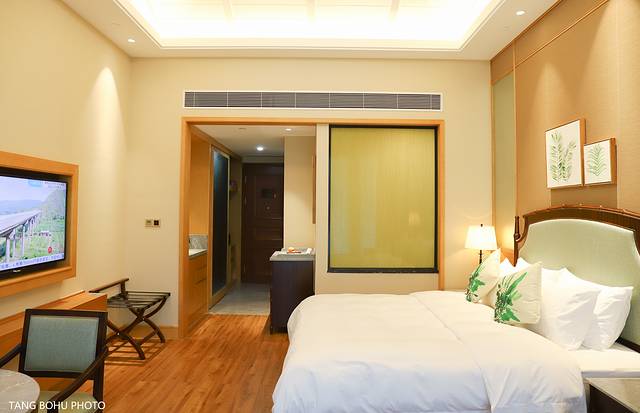 当我推开房间的大门时,被房间里的现代化的设计风格给吸引住了,超大的床,睡上去很舒服,房间的设计理念把武夷山的景色融入其中,整个房间温馨,住在这里连做梦都是香甜的,每一处细节都能看出酒店的贴心,就像是住在家里一样倍感亲切。还配了一圆型的桌子,这个用来泡茶还是非常适合的呀。