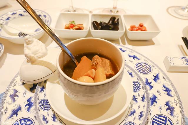 来武夷山旅游最不能错过的是当地美食了,在悦华酒店中餐厅里就能吃到地道的武夷山美食,这里的地道美食熏鹅有点微辣吃起来香,让我惊喜的是福建省的一首佛跳墙菜,这里经过本地改良,加入了一些当地的食材,红菇,竹荪,鸡肉等等。汤喝出来的味道完全和普通的佛跳墙不一样,很好喝。现做的黑豆腐鲜嫩可口,当地特有的鱼肉,味道鲜美。