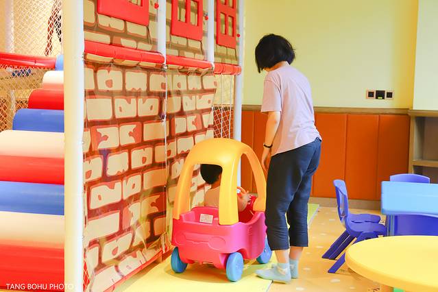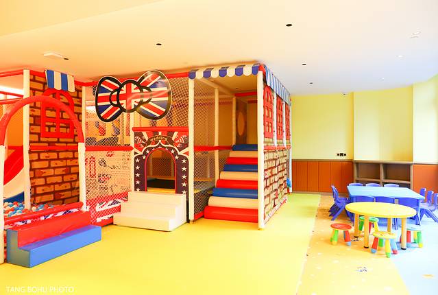在馨悦楼一楼里还有一儿童乐园,这里是入住酒店游客免费使用的,我看有很多家长带着孩子出游,趋着放暑假时间,家庭出游也成了一种形式,选择一家合适家庭入住的酒店也是很重要的,而且这里还有免费的游乐场,看见小朋友们都玩得很开心呢。里面有蹦床的,有小车,还有滑滑梯等等。小朋友在旅游过程中还多了一个好玩的去处。