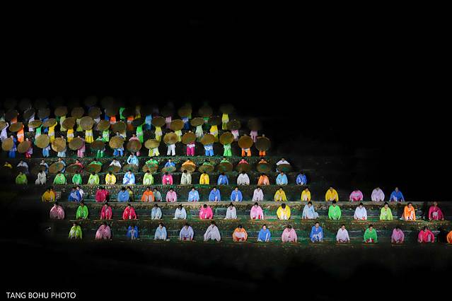 整个演出是以武夷山为地域背景,以武夷山茶文化为表现主题的大型实景演出。《印象大红袍》山水实景演出打破了固有的“白天登山观景、九曲泛舟漂流”的传统旅游方式与审美方式,不仅展示了夜色中的武夷山之美,同时还创造了多个世界第一。当你坐在360度旋转舞台的那一刻起,演出开始后你会跟着眼前的画面慢慢的旋转,从茶文化融入到演出中,在这里演出的演员们有90%都是来自当地的人。