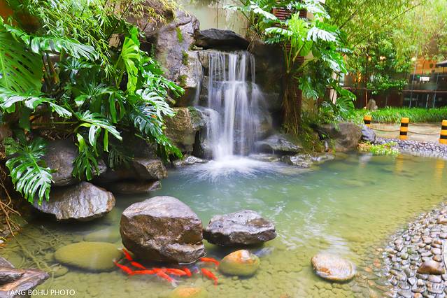 这次来武夷山正巧遇到突下大暴雨,整整下了一天,雨后天晴时带着夫人前来周边逛逛,宁静的酒店,雨后的空气清新,雨滴还挂在树上,漫步在酒店的小公园里处处郁郁葱葱,酒店在一期的地方有一处小瀑布,红鲤鱼在雨后的水池里游来游去,山水景色就在眼前。
