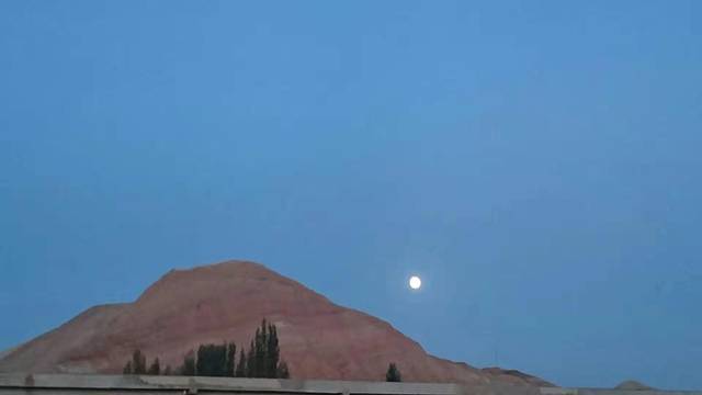 月亮升起后的七彩丹霞