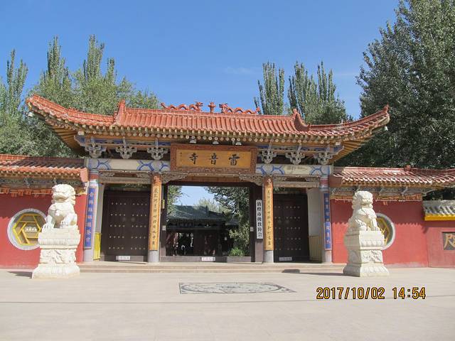 在去鸣沙山的路上,看到路边有个雷音寺(免门票),就和朋友进去看了一下。其实整个寺庙的建筑布局还是很不错的,但不知道是为什么,外面艳阳高照天气炙热,但我和朋友进入寺庙的一些殿堂时总感觉凉飕飕的,有种阴冷的感觉。因为没多少人,也没看到有讲解,我们这些外行看了看就出来了。