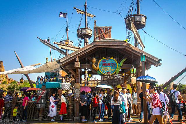 整个园区融合了多种建筑风格,有两艘巨型海盗船、海盗主题餐厅及一个欢乐的戏水区。无论老少都赞叹“加勒比海盗——沉落宝藏之战”中的场景,或是在“凡迭戈剧院”近距离观赏特技表演与杂技。
