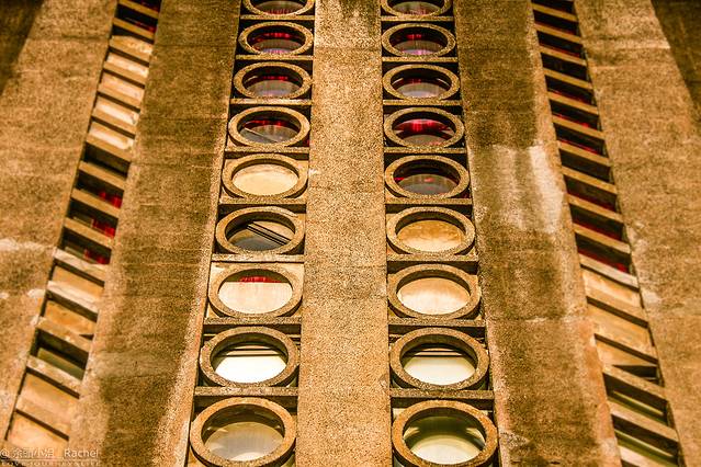 酒店门口有直接到1933老场坊的公车,很快我们就抵达了第一站的景点。一到这儿,就被其建筑外观所吸引。1933老场坊的建筑融汇了东西方特色,整体建筑可见古罗马巴西利卡式风格,而外方内圆的基本结构也暗合了中国风水学说中 “天圆地方”的传统理念。