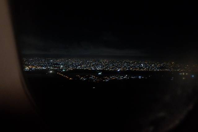 凌晨时分的夜色,城市中的点点灯光正在迎接着远方的客人。