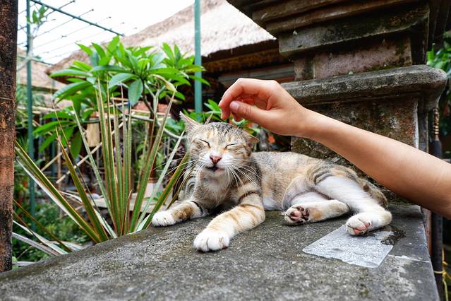 雨后的石阶上,小猫咪正在舒服的享受属于他的按摩时光(按摩师:火火)