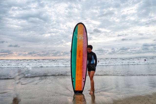 娇小的身躯 硕大的冲浪板 绿浪沁湿你的脸颊