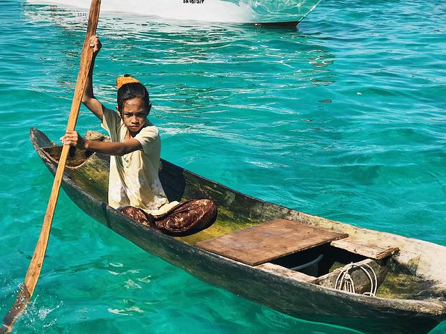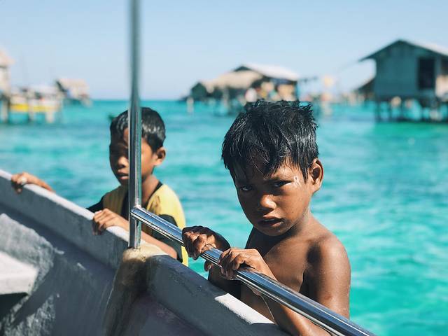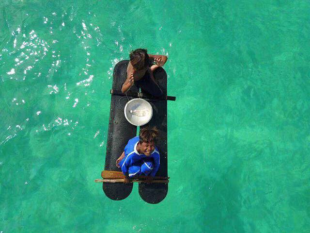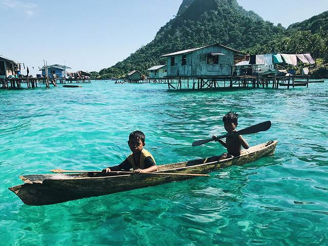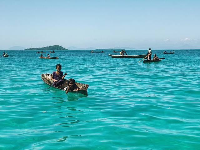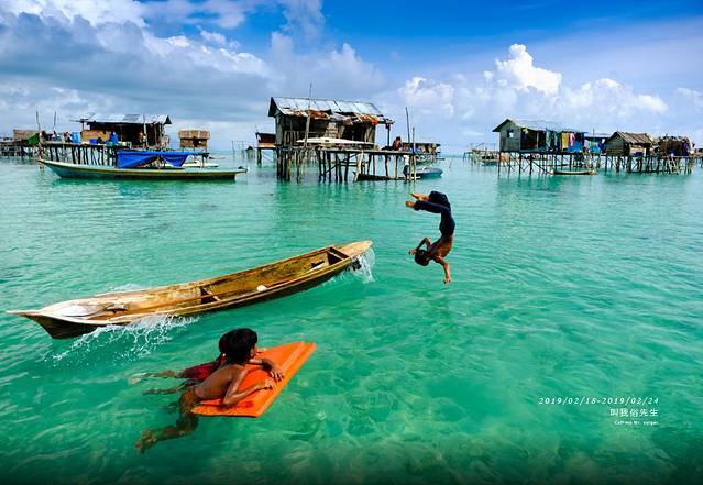 宝石般清澈透亮的海水,高脚架棚居,看到我们的船,各家的小孩划着浆从四面八方涌过来,向我们讨要糖果、口红、项链……