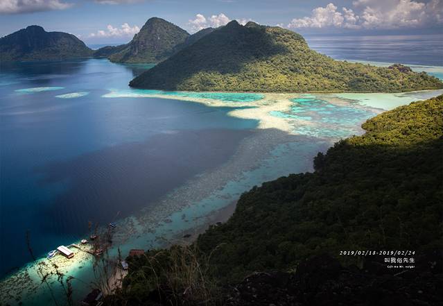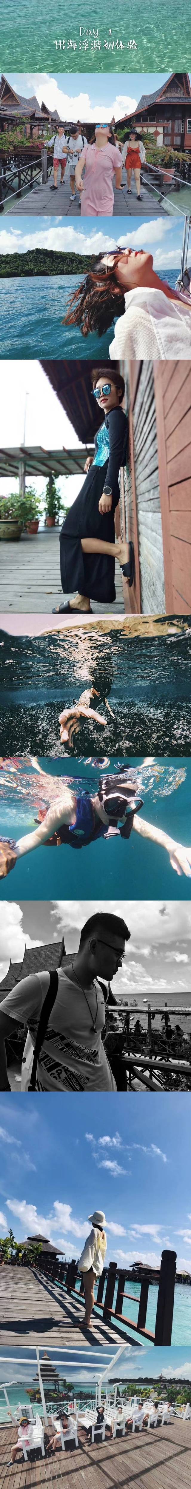 敦沙卡兰海洋公园访巴瑶族原住民水屋,珍珠岛登山鸟瞰仙本那群岛,曼达布湾岛浮潜,军舰岛浮潜。